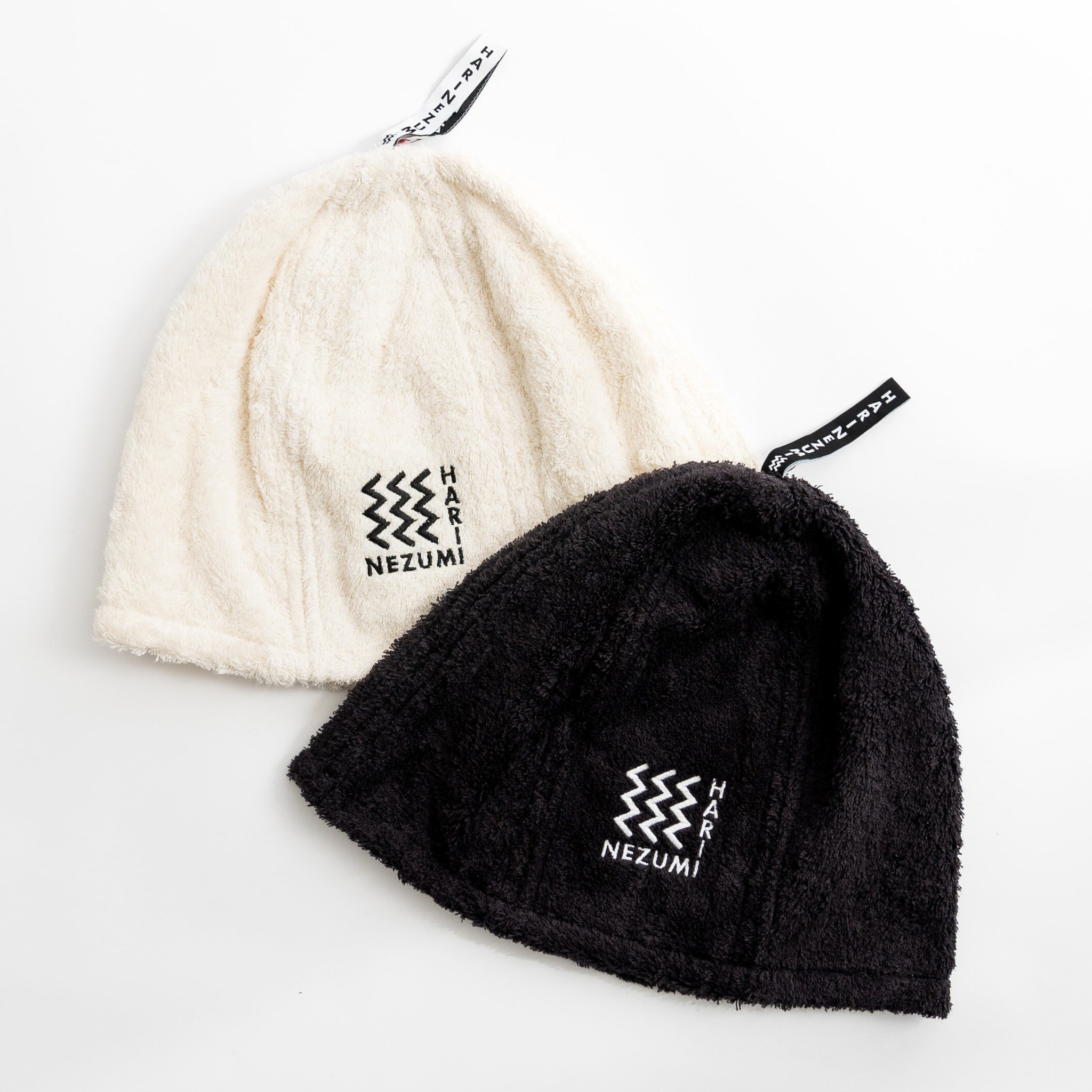 HARINEZUMIのサウナハット 深型は、今治タオルメーカーの綿100%パイル織りを採用しています。綿の空洞繊維構造が耐熱性を生み出し、適切な厚みの設計がすぐ乾くタオルのサウナハットを実現しています。