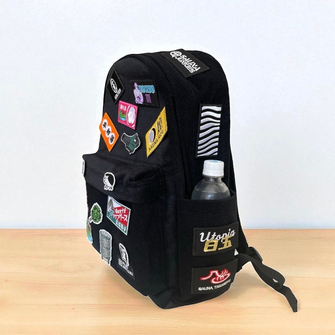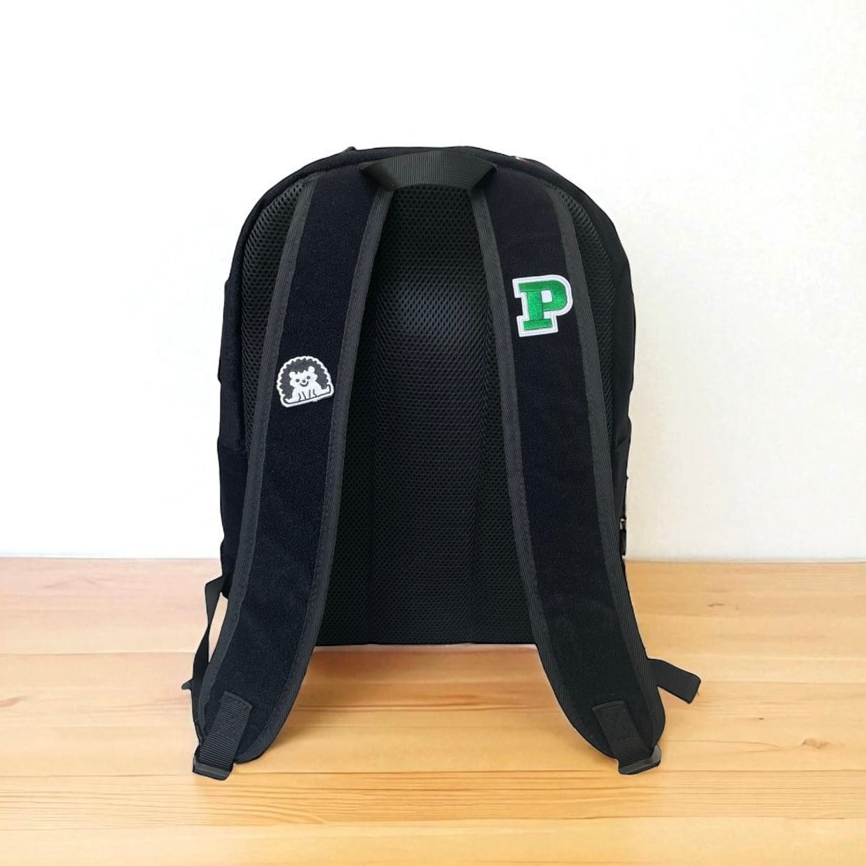 シンプルな真っ黒いリュック、でもカスタマイズ自由自在。