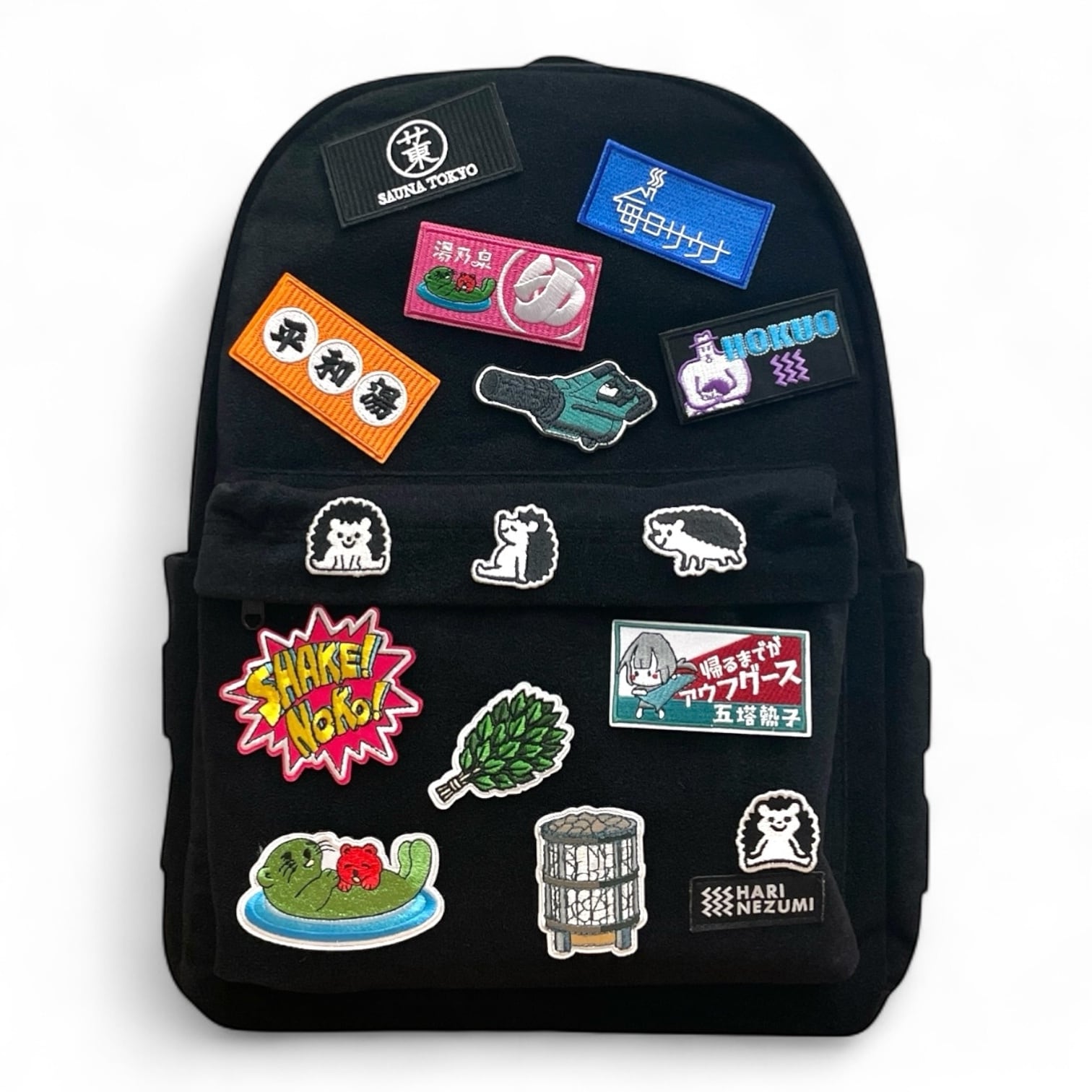 リュック全体にワッペンの貼り付けができるように面ファスナーのメスでできています。
