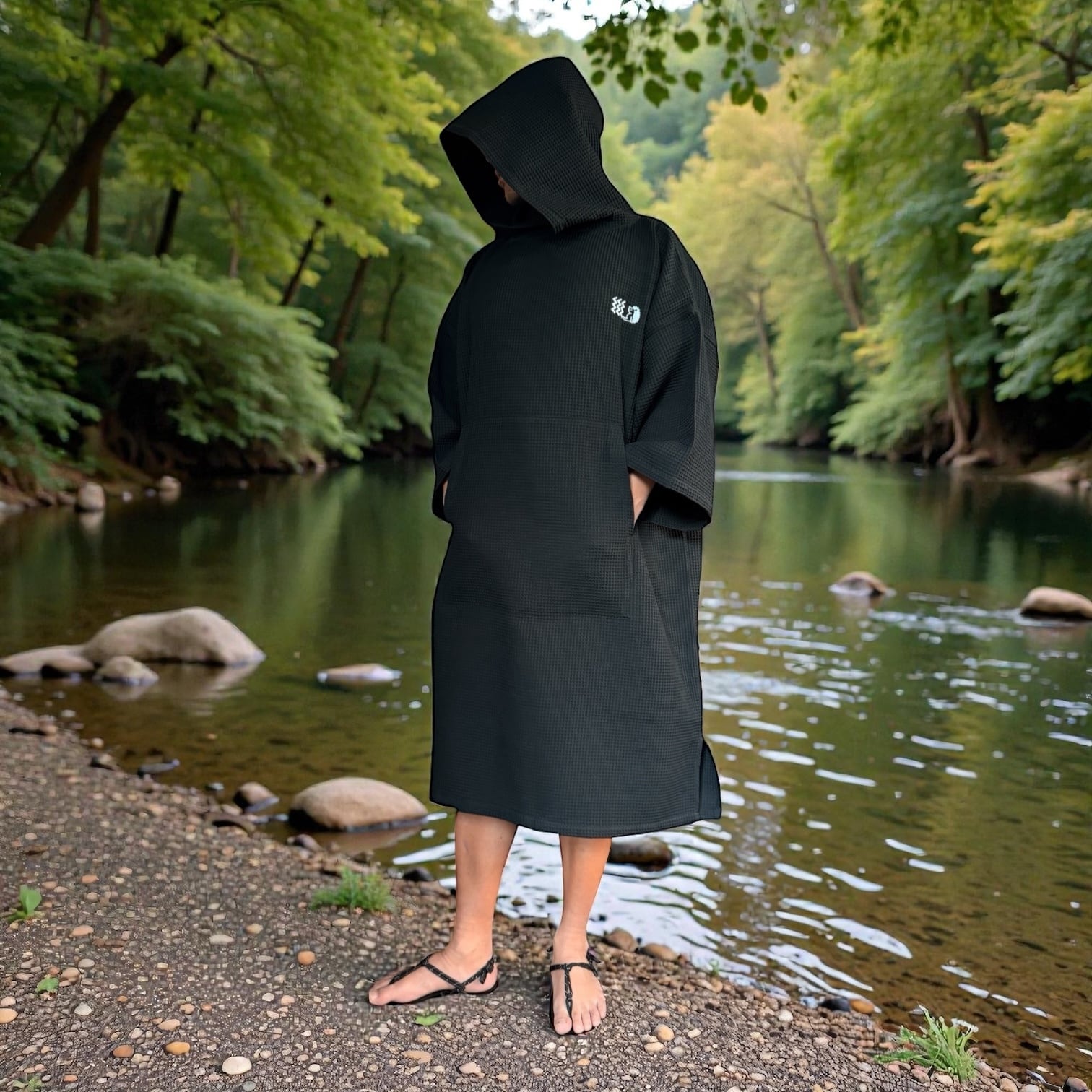 アウトドアサウナに欠かせないポンチョ。