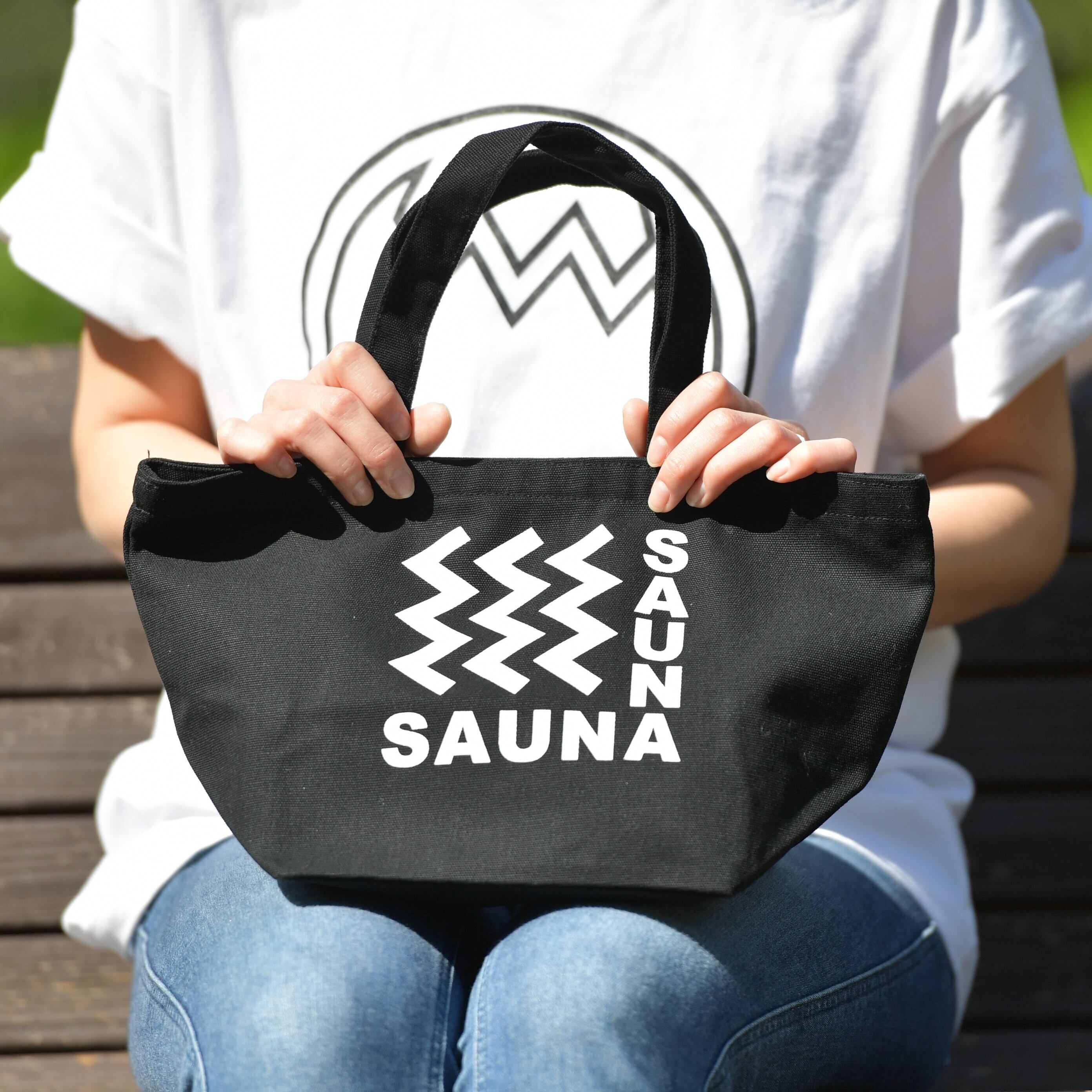 サウナの蒸気とハリネズミの針をイメージしたギザギザロゴとSAUNAの文字の組み合わせはサウナ好きにはたまりません。