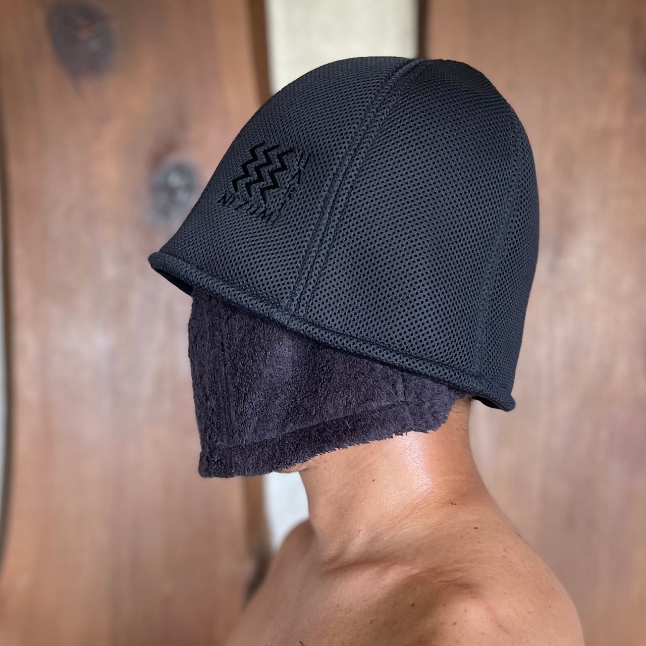 すでにお手持ちのハリネズミの定番として人気のタオル素材のサウナハットを組み合わせて使うことで、さらに耐熱性を高めたり、肌当たりよく使うことも可能です。