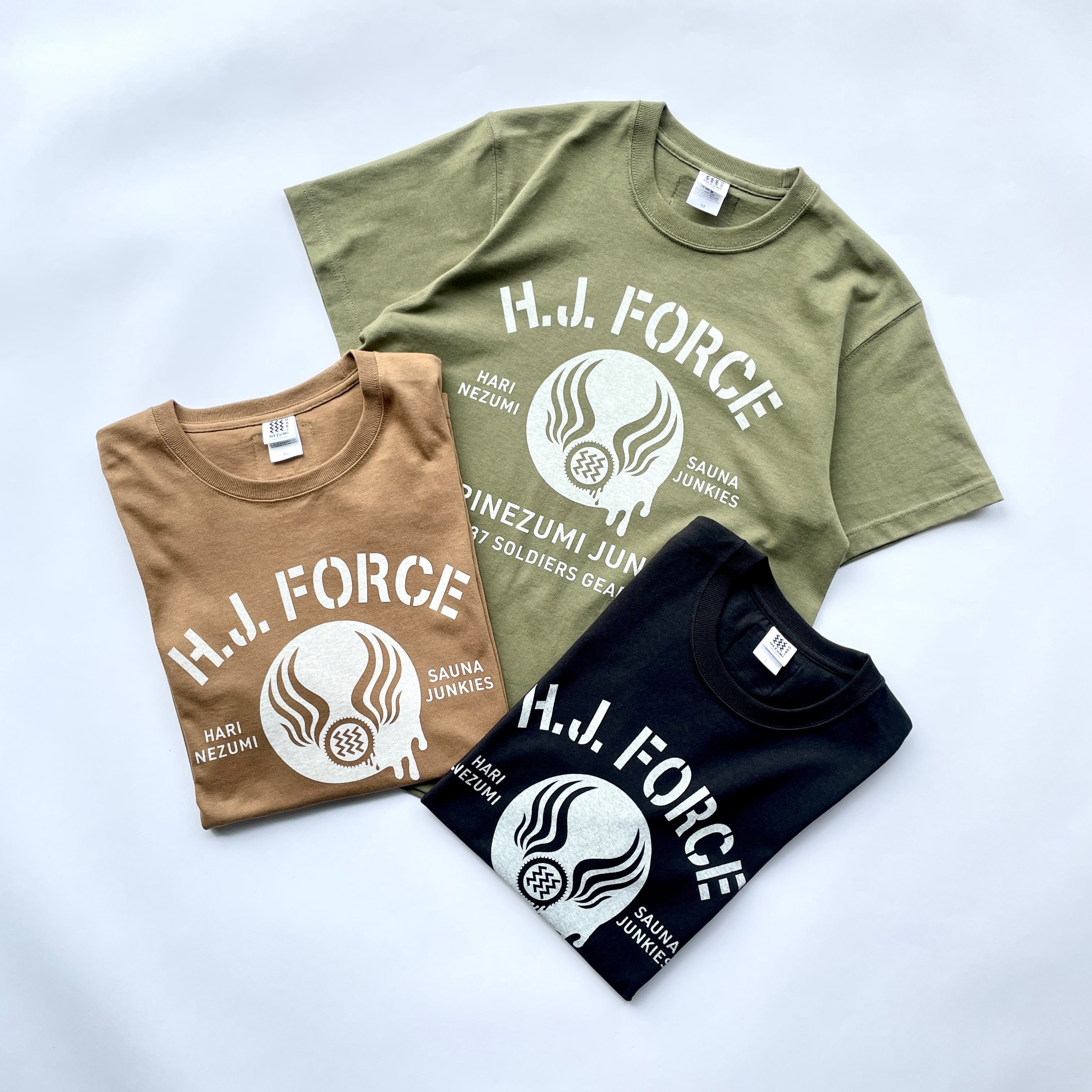 フロントにはHJフォースロゴを、首の後ろに「Milスペックタグ」を付けてあります。