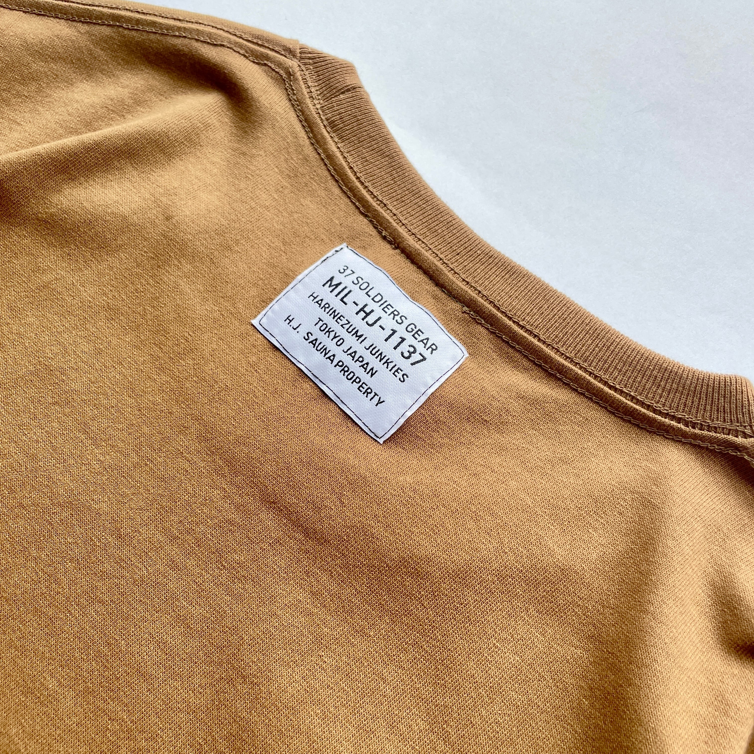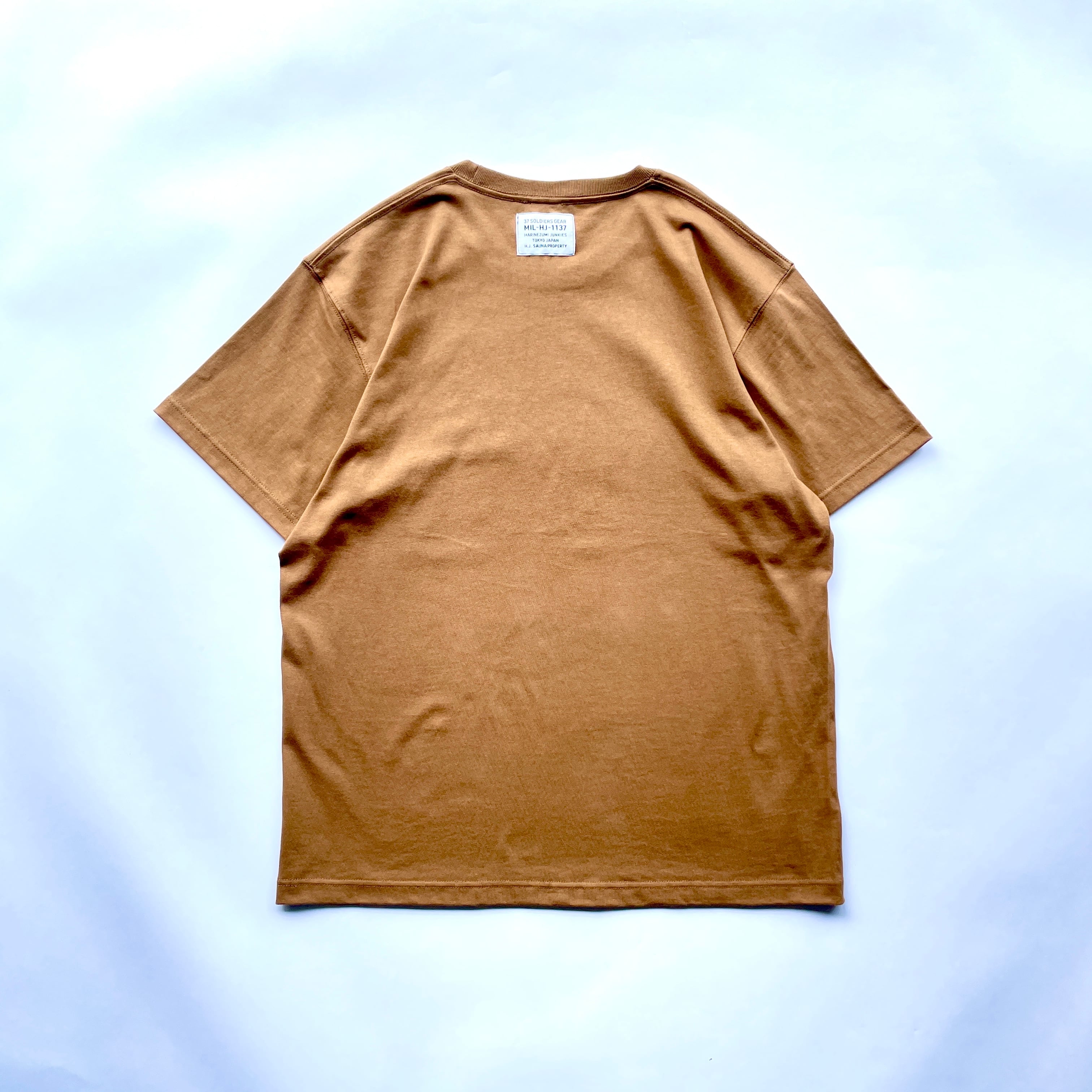 いつものハリネズミのTシャツとは異なり、7.1オンスと厚手でザラ感のあるボディーを採用し、掠れ感のあるプリントで古着のミリタリーTシャツっぽさを演出してみました。