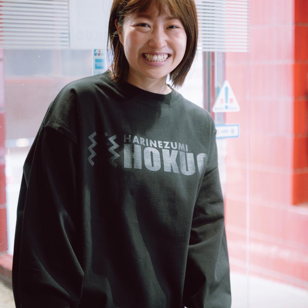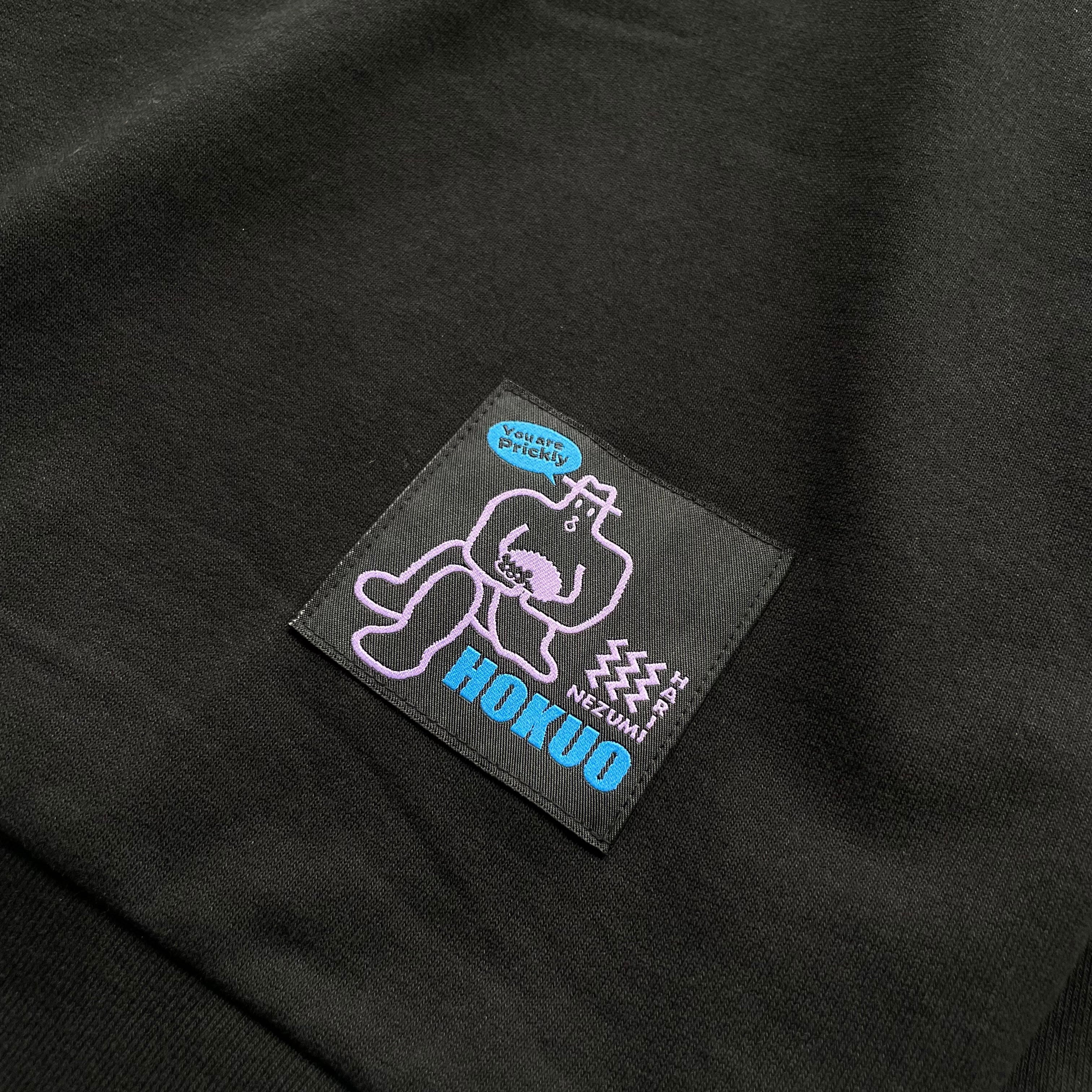 首の後ろには同じく北欧ロゴで使われているパープルで「ハリネズミ」とプリントが入ります。